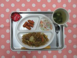 Home > 今日の給食 > 焼きそば ウィンナー 大根サラダ 青梗菜のスープ ぶどうゼリー