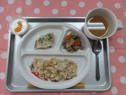 2025.10.02 鶏そぼろごはん 白菜の味噌汁 白身魚の磯辺焼き 筑前煮 みかんヨーグルト たんぱく質・・・17.9g エネルギー・・・356Kcal ※3歳~5歳児の栄養価を記載しています。2歳児の栄養価は3歳~5歳児の75%の値です。