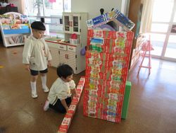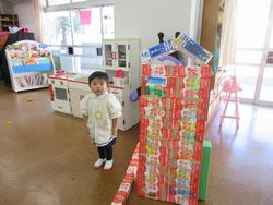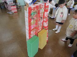 駅は安定して立つようになりました。ひまわり組の子どもも大満足です。