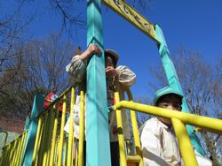はちの巣で大騒ぎ?している滑り台の上から「お~い」とかわいらしい声が聞こえました。