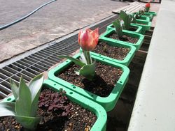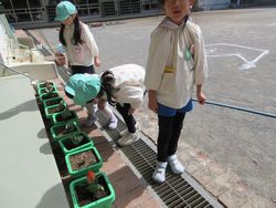 秋ごろ植えたちゅうりっぷの球根。毎日水をやり「早くちゅうりっぷ咲かないかな?」「私のちゅうりっぷは何色が咲くかな?」と楽しみながら、ちゅうりっぷが咲くのを今か、今かと待っていた子ども達。