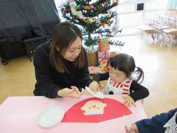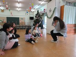 今日はげんき広場のクリスマス会でした。未就園児のお友達とお兄さんやお姉さんも一緒に楽しみました。