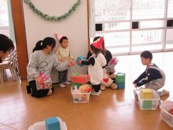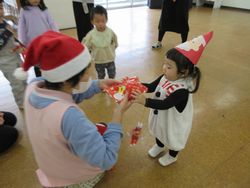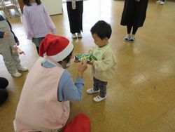 絵本を見た後にどこから鈴に音が聞こえてきました。先生サンタさんがプレゼントを持ってきてくれましたよ!!
