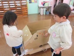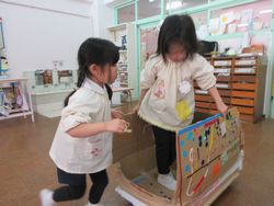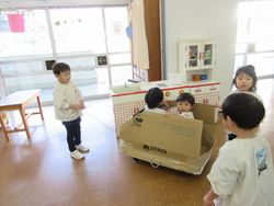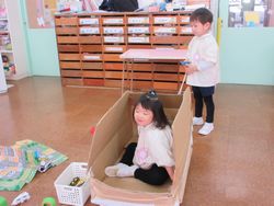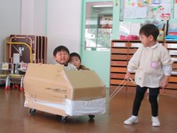 1学期に担任が作った動く乗り物で、今でも遊んでいます。