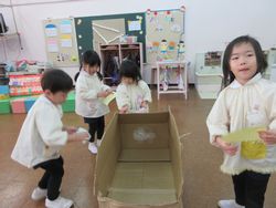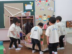 桜組とひまわり組が、乗り物の装飾をしていると、突然保育室のドアが開いて・・・