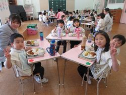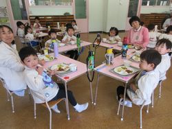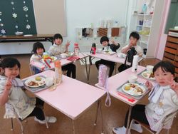 子ども達の楽しみにしている、ハッピーランチデーも今年度は今日を入れて後2回です。幼稚園で給食を食べる機会が、もう数えるほどしかない松組(年長組)は、みんなたくさんおかわりをしていました。みんなで食べると、おいしい給食がもっとおいしく感じますね。