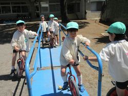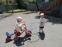 桜組の子どもは、「(友達の)三輪車、引っ張ってあげてるんだ」と得意そうに言っていました。引っ張るのが難しいので、リングをつけてみたそうです。