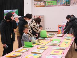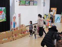 子ども達が今まで作った作品が展示した「作品展」でした。「これ私の!」「これはね、車を作ったんだよ」と保護者の方の手を引いて説明していました。