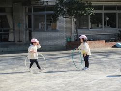 桜組(年少組)は友達とリングを回しながら遊んでいました。