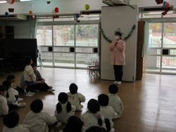 園長先生から「冬休みの間、手洗い、うがいをし、病気やケガをしないように気をつけましょうね。そして3学期に元気会いましょう」とお話がありました。
