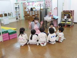 桜組(年少組)、ひまわり組(満3歳児)、ちゅうりっぷ組も先生の話を座って聞くことができるようになりました。