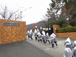 鹿島小学校まで、歩いて行き、小学校の校長先生にお話を伺いました。小学校は、校庭で遊んでいる状態からの避難だったようです。