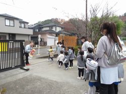 普段は園庭に集まって、園長先生の話を聞き、訓練終了ですが、今日はまだまだ訓練が続きます。