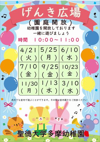 Home > 幼稚園からのお知らせ > 園庭開放を行ないます