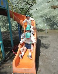 みんなでつながって滑り台をしたり、スケーターに乗ったりと友達と楽しんでいました。