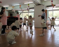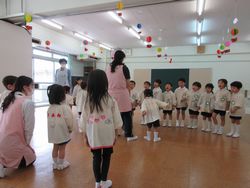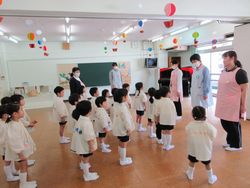 松組から「これからもいっしょにあそびましょう」と歓迎の言葉をかけられると梅組(年中組)や桜組は嬉しそうにしていました。