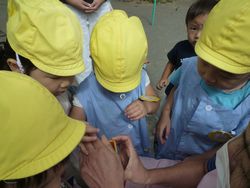 先生が触っている姿を見て、「私も触りたい!」「僕も!」と小さい友だちがいるので勇気を出して触っていました。