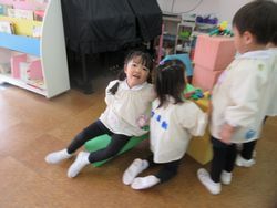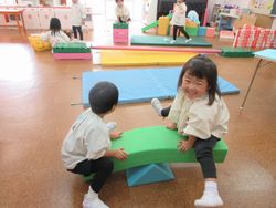 2人いないと遊べないので、「○○ちゃん、一緒にやろう」と自然と誘い合って遊んでいます。