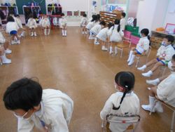 初めは恥ずかしがり、なかなか大勢の前で大きな声で話せなかった子どもも、全員に聞こえるよう大きな声が出せるようになりました。そして椅子から椅子へ移動することも素早くなりました。