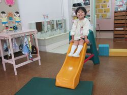 「お外で遊びたい!」と言う子どもたちの為に、すべり台を持ってくると、大人気で、喜んで遊んでいました。