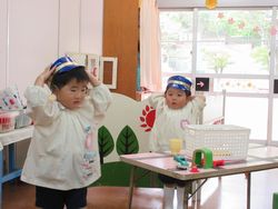 おや、帽子をかぶって、準備をしている子どもたちがいますね。