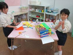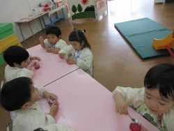 隣の梅組(年中組)の保育室では、何をしているのかな?
