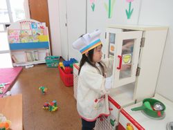 素敵な帽子をかぶってお料理をしている子どもがいました。
