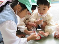「先生、小さいビニール袋ください」というので何が始まるのかな?と思ってみていると….