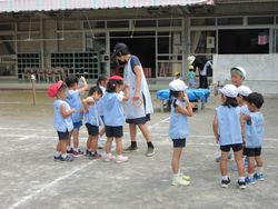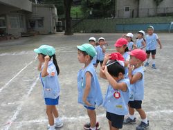 暦の上では秋ですが、今日は蒸し暑くて、動くと汗が出ます。子どもたちは「暑い!」「汗がだらだら出るよ」「なんでまだ暑いの?」「もう秋なのにね」と話しながらも、外でたくさん遊んでいました。