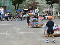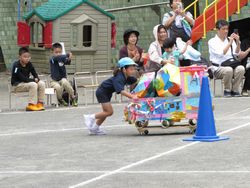 松組と梅組が協力して自分たちで作った「宝石」を運びます。初めて行った時は、とても時間がかかった競技でしたが、みんなで「宝石の積み方」や「運び方」を考えて、とてもスムーズに運べるようになりました。
